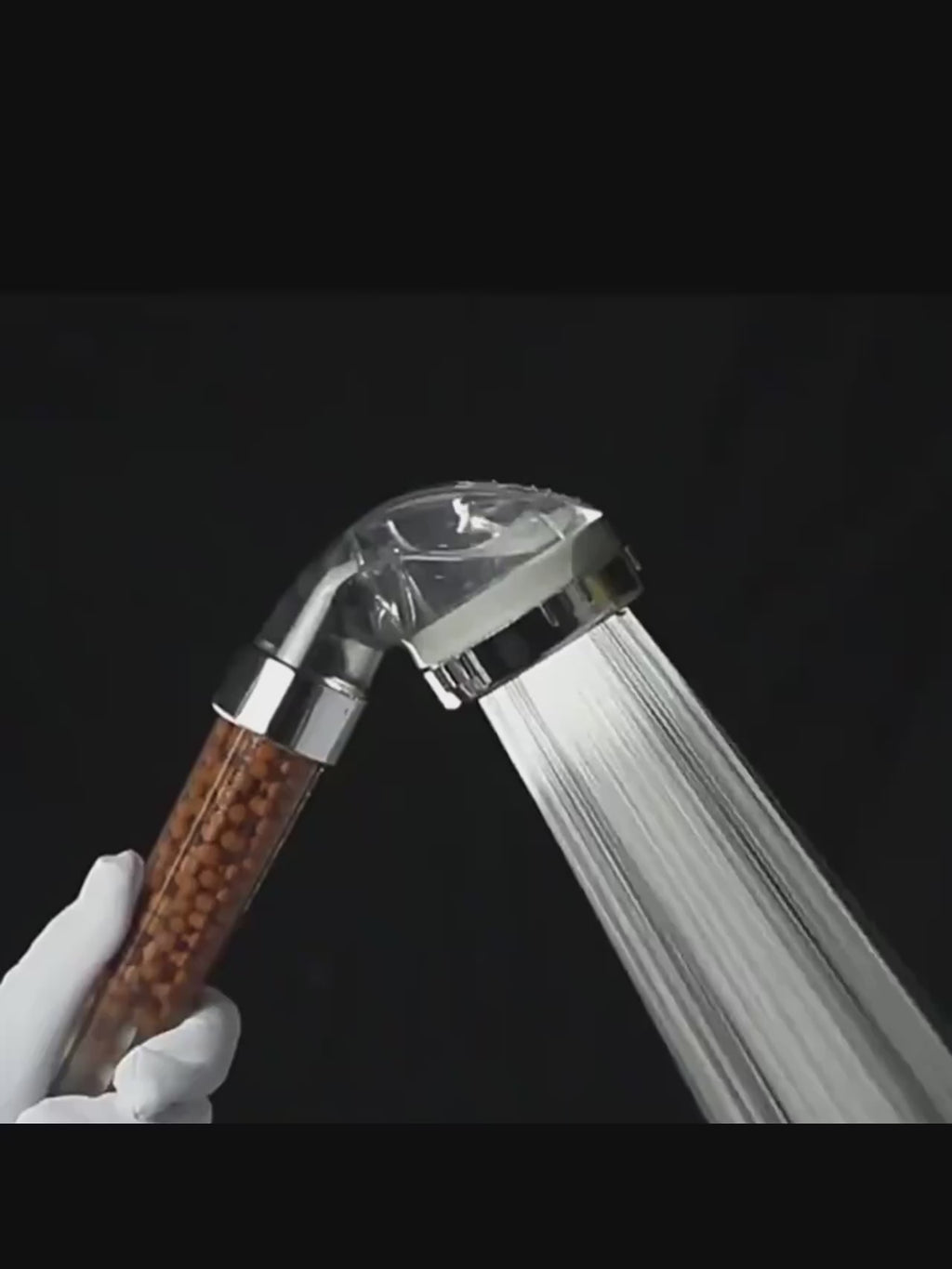 - Design: Transparent handdusch med synliga filterkulor